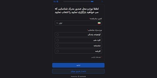 با استفاده از ابزار Sumsub، مدارک هویتی خود را برای بررسی ارسال میکنید.