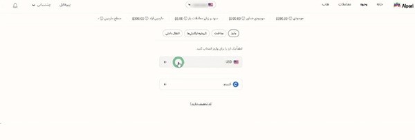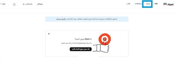 ابتدا وارد پنل کاربری خود در آلپاری شوید و از منوی اصلی روی گزینه «وجوه» کلیک کنید.