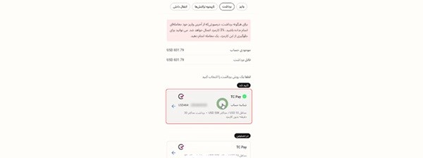 در لیست روشهای برداشت، گزینه «TC Pay» را انتخاب نمایید.