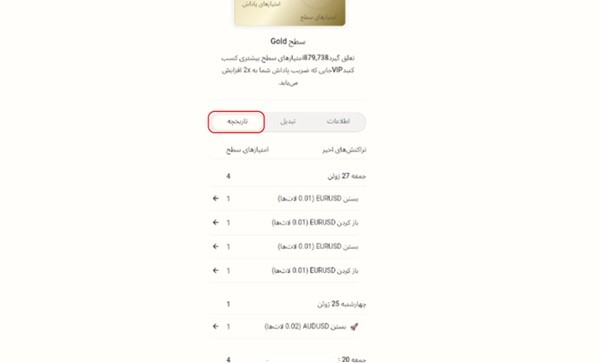 در بخش تاریخچه نیز میتوانید سوابق دریافت امتیازات را مشاهده کنید.