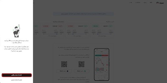 ابتدا پس از ورود به بروکر آلپاری در صفحه اصلی روی گزینه «افتتاح حساب» کلیک کنید.