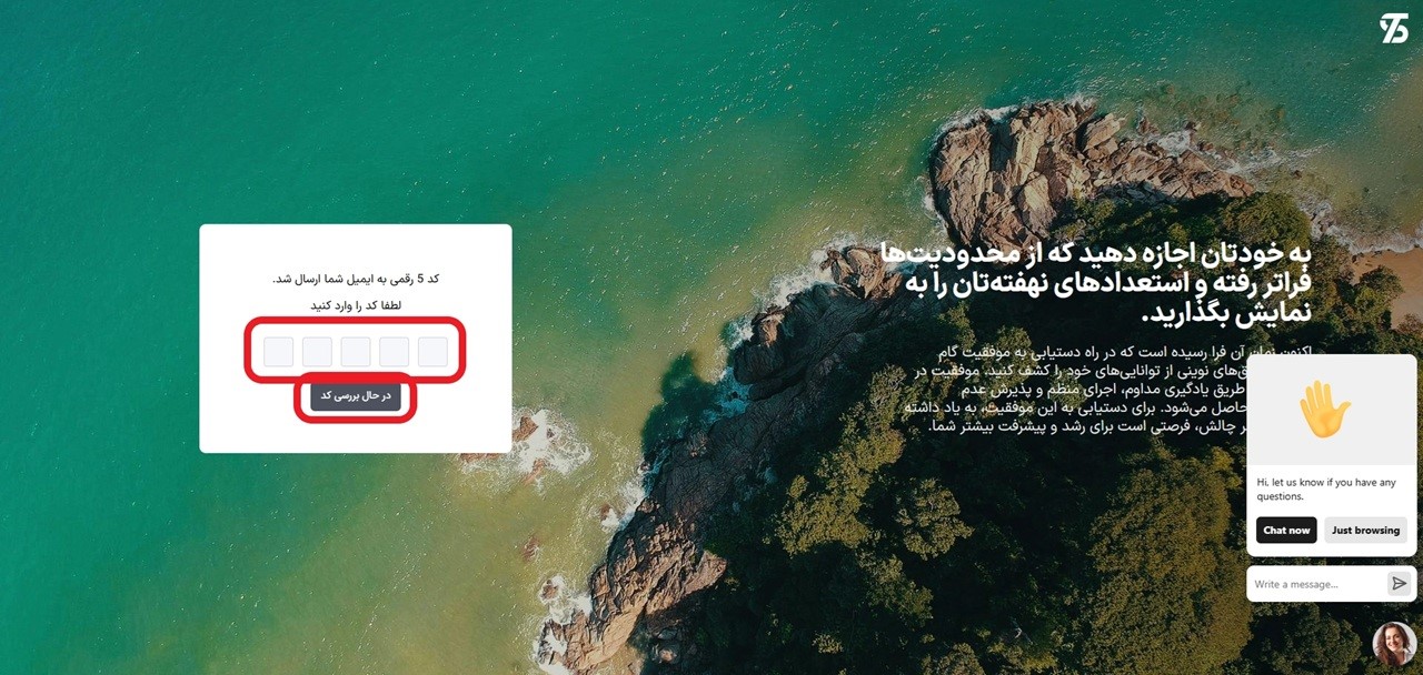 5- کد دریافتی را در کادر مشخصشده در سایت وارد کنید و روی گزینه «در حال بررسی کد» کلیک کنید.