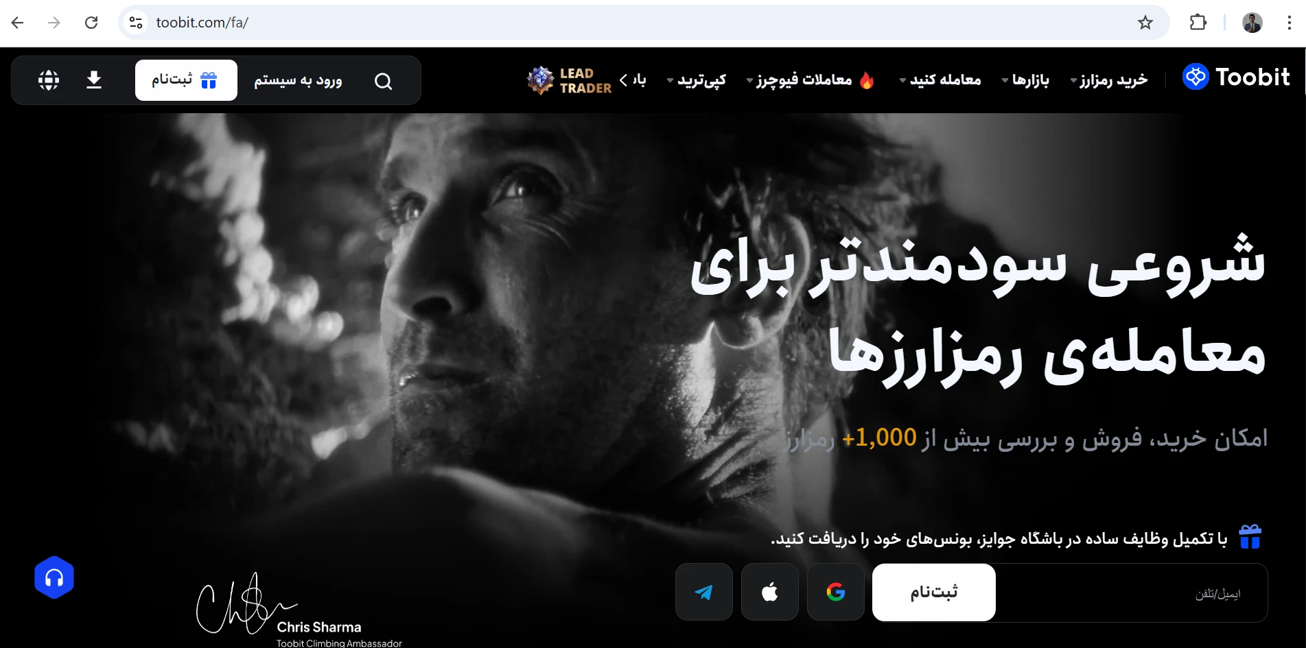 صرافی توبیت (Toobit) یکی از معتبرترین پلتفرمهای معاملاتی ارز دیجیتال است که بیش از ۲ میلیون معاملهگر فعال در جامعه خود دارد. این صرافی برای کاربران ایرانی امکان ثبتنام سریع و بدون نیاز به احراز هویت را فراهم کرده است تا بتوانند به راحتی معاملات خود را آغاز کنند. در توبیت میتوانید بیش از ۱۰۰۰ ارز دیجیتال را در بازارهای اسپات و فیوچرز خرید و فروش کنید و از امکانات متنوع این پلتفرم برای مدیریت داراییها و اجرای استراتژیهای معاملاتی بهرهمند شوید.