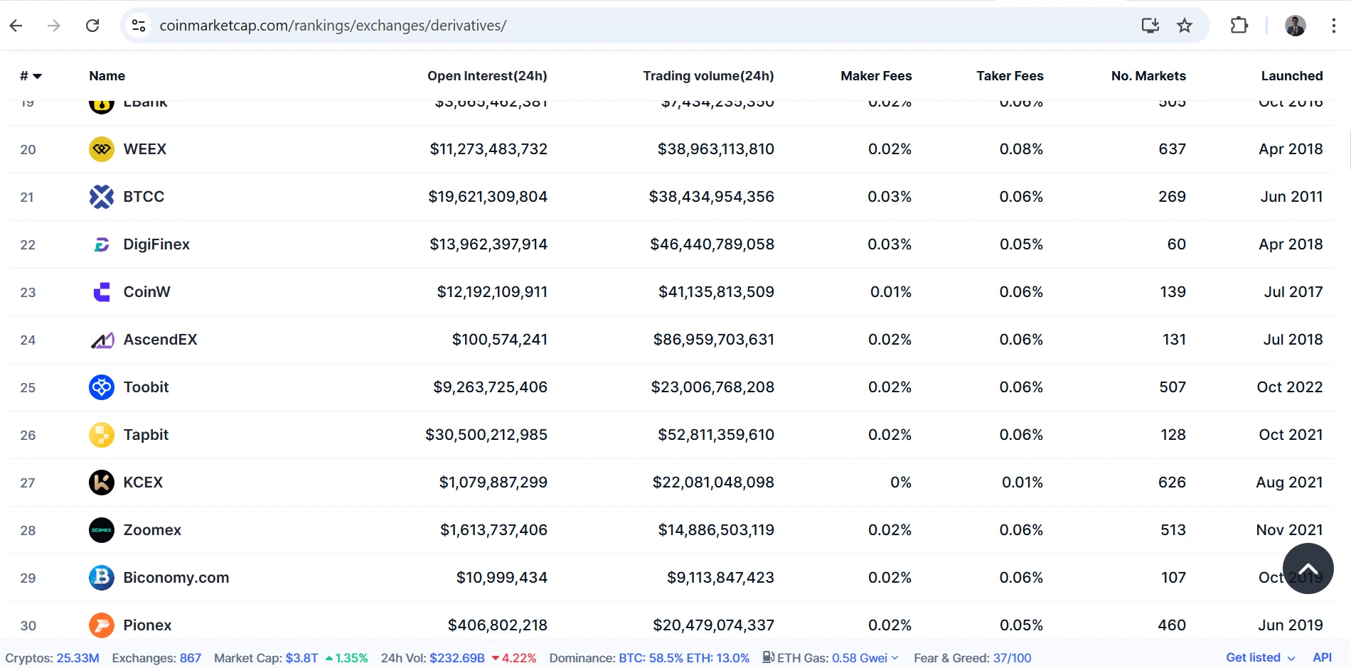 | بایننس | 26 میلیارد دلار | 97 میلیارد دلار | 946 | 89 | 0.02% میکر و 0.04% تیکر | 1 |