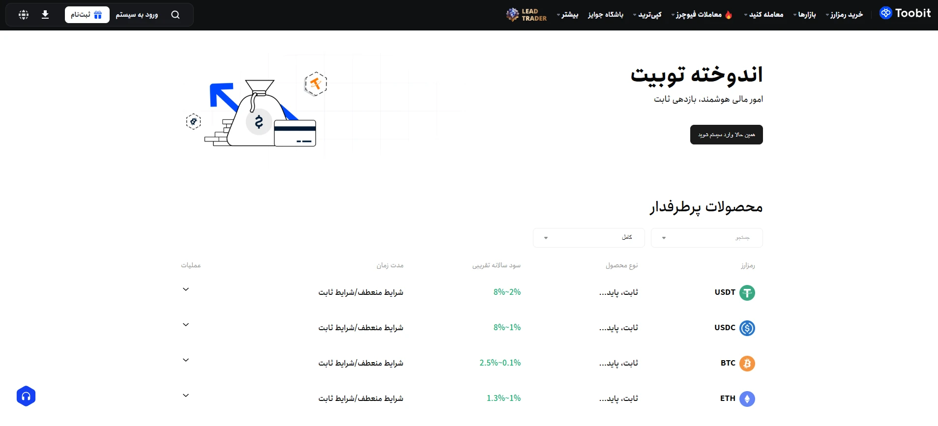 در ابتدای سال ۲۰۲۵، صرافی توبیت از محصول مالی جدید خود با نام سرویس اندوخته (Earn) رونمایی کرد. این سرویس در واقع نوعی پلتفرم سرمایهگذاری و پسانداز رمزارزی است که به کاربران اجازه میدهد با سپردهگذاری رمزارزهای خود، در بازههای زمانی مشخص سود دریافت کنند. سازوکار این سرویس شباهت زیادی به استیکینگ (Staking) دارد؛ با این تفاوت که کاربران میتوانند بین طرحهای مختلف با نرخ سود و دورههای قفل متفاوت، انتخاب داشته باشند.